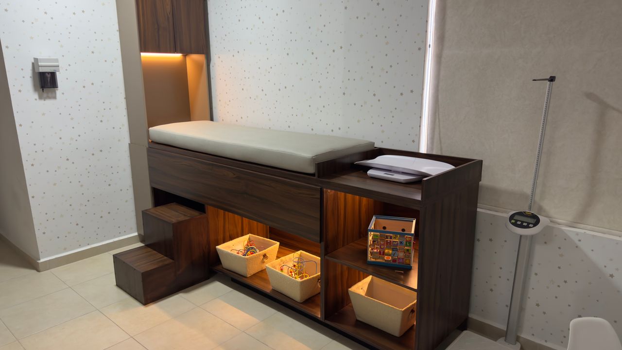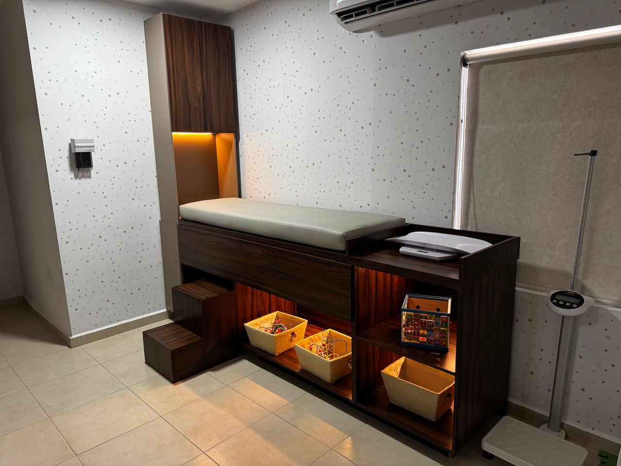 El consultorio cuenta con una sala de espera amplia y acogedora para que tus acompañantes puedan esperarte durante la consulta. Dentro del consultorio cuento con todo el equipo necesario para revisar a tu bebé, ver los resultados de laboratorio o imágenes de los estudios que tengas. Además con el estetoscopio electrónico tu también podrás escuchar el corazón y los pulmones de tus hijos para que comprendas más fácilmente cómo se encuentra tu bebé.
